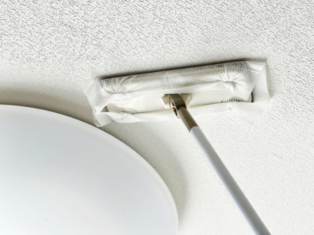 普段のお手入れでは、フロアワイパーにドライシートを取り付けて、軽く天井を拭き取る程度で十分です。週に1回程度の頻度で行うことで、ホコリの蓄積を防げます。
